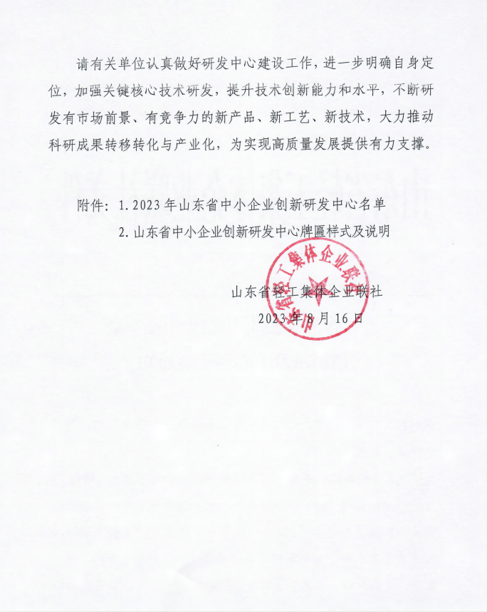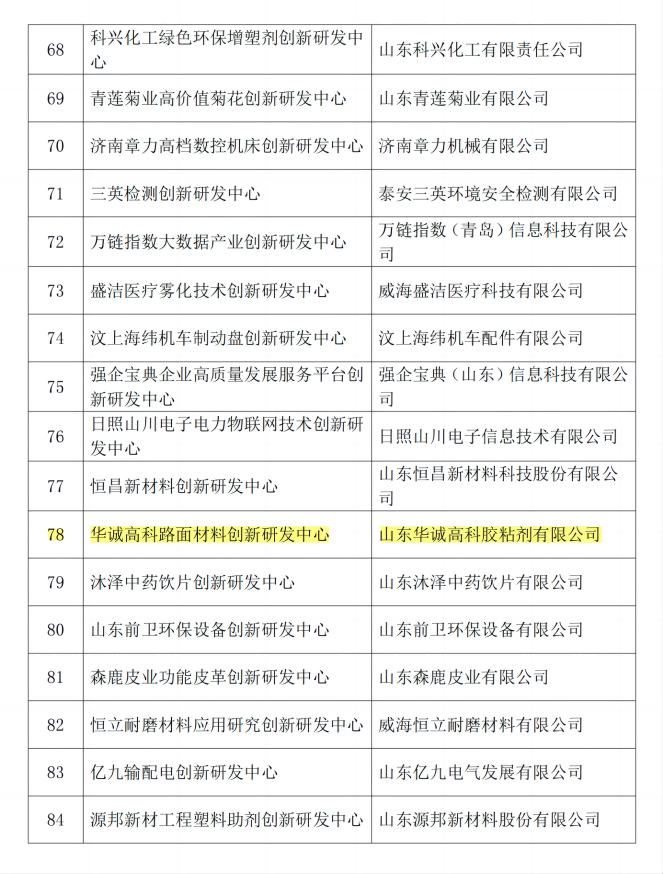2023年8月16日,山東華誠高科膠粘劑有限公司獲得山東省中小企業創新研發中心認定。