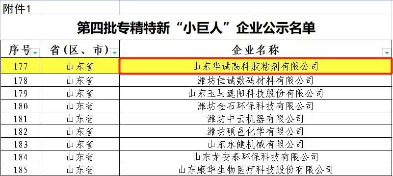 為深入貫徹習(xí)近平總書記關(guān)于“培育一批‘專精特新’中小企業(yè)”的重要指示精神,落實(shí)中辦、國辦《關(guān)于促進(jìn)中小企業(yè)健康發(fā)展的指導(dǎo)意見》,工業(yè)和信息化部組織開展第四批專精特新“小巨人”企業(yè)培育和第一批專精特新“小巨人”企業(yè)復(fù)核工作,現(xiàn)已完成審核并公示。山東華誠高科膠粘劑有限公司以扎實(shí)的技術(shù)創(chuàng)新和產(chǎn)業(yè)成果在眾多參評企業(yè)中脫穎而出,成功入選國家級專精特新“小巨人”企業(yè)。